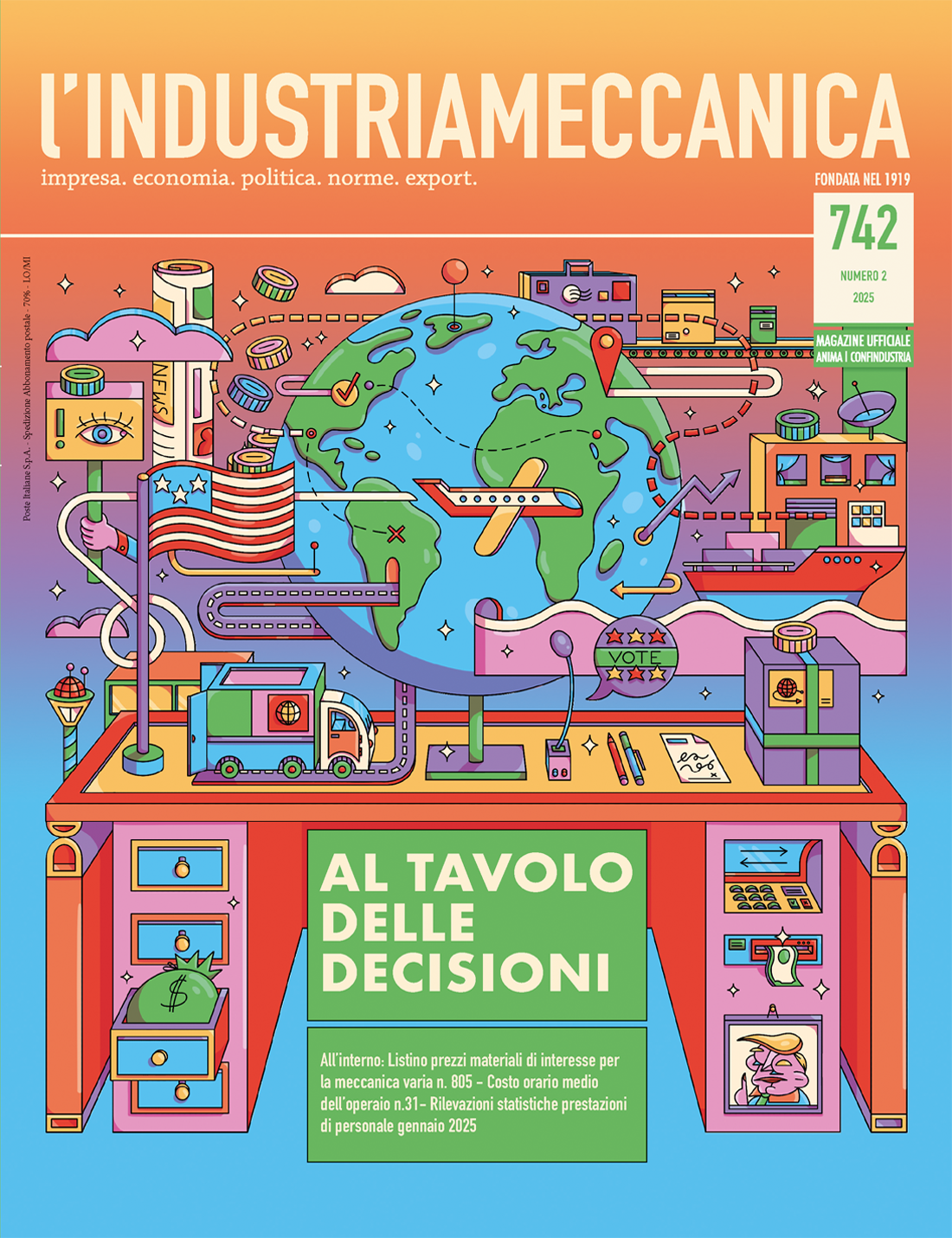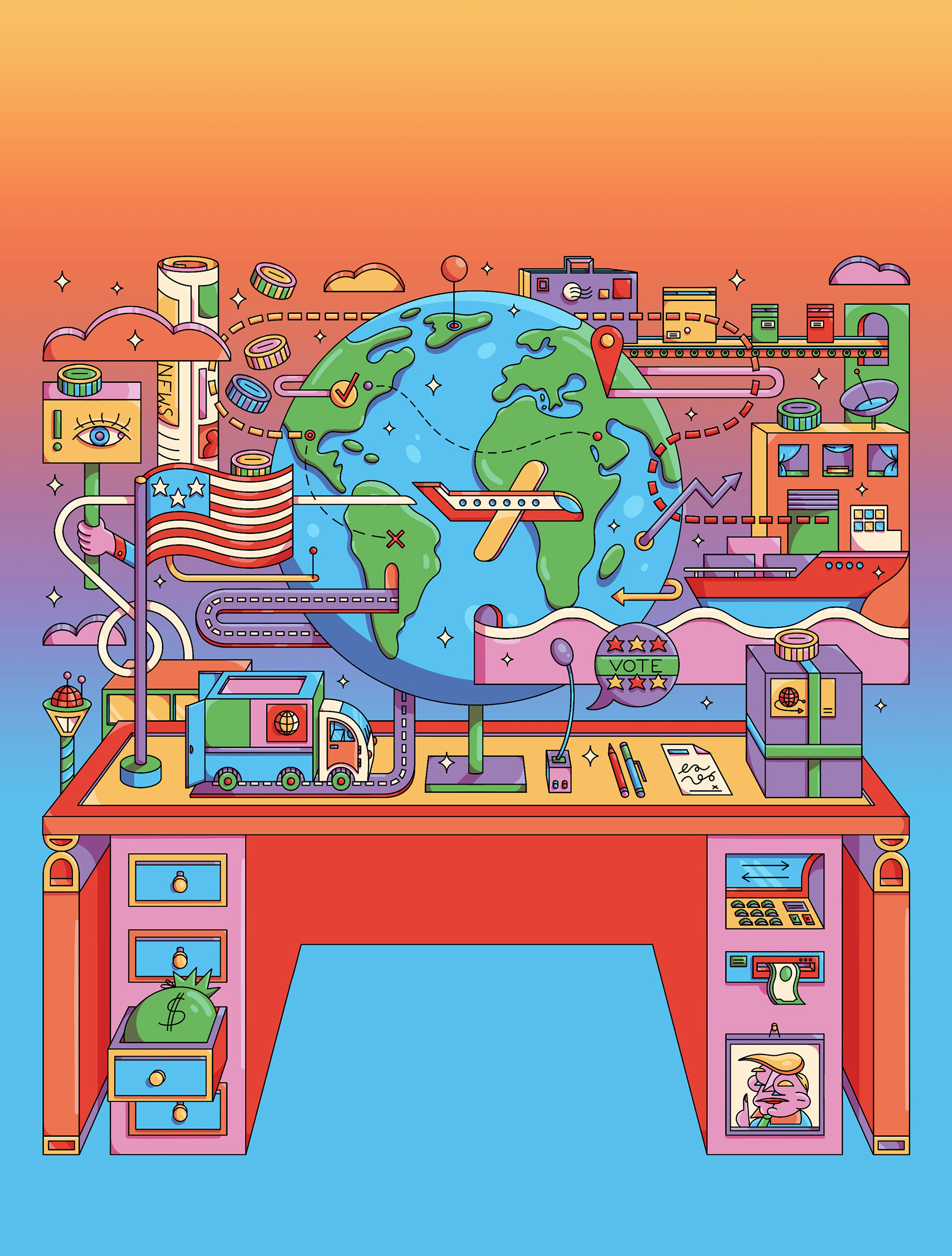 Questa è la seconda di quattro illustrazioni realizzate per la copertina del numero 742, dedicata al tema dell’importazione ed esportazione americana e nuovi dazi con gli altri paesi. 🌎 🚛