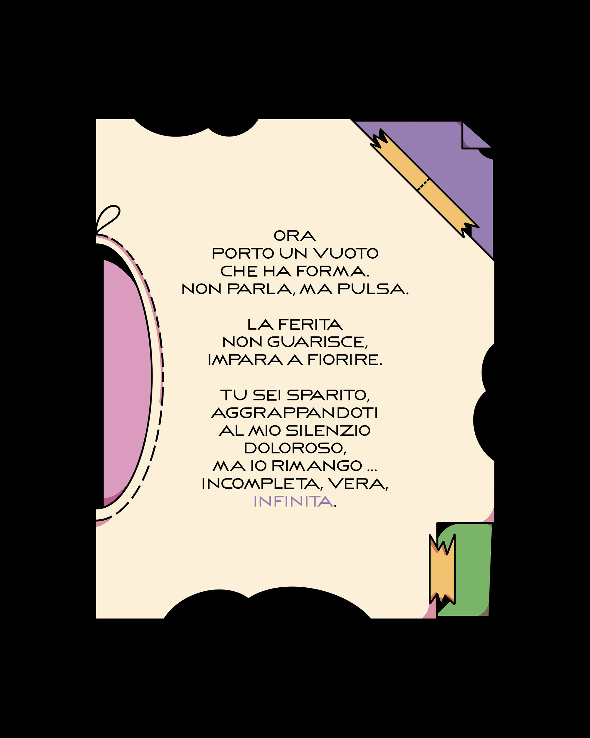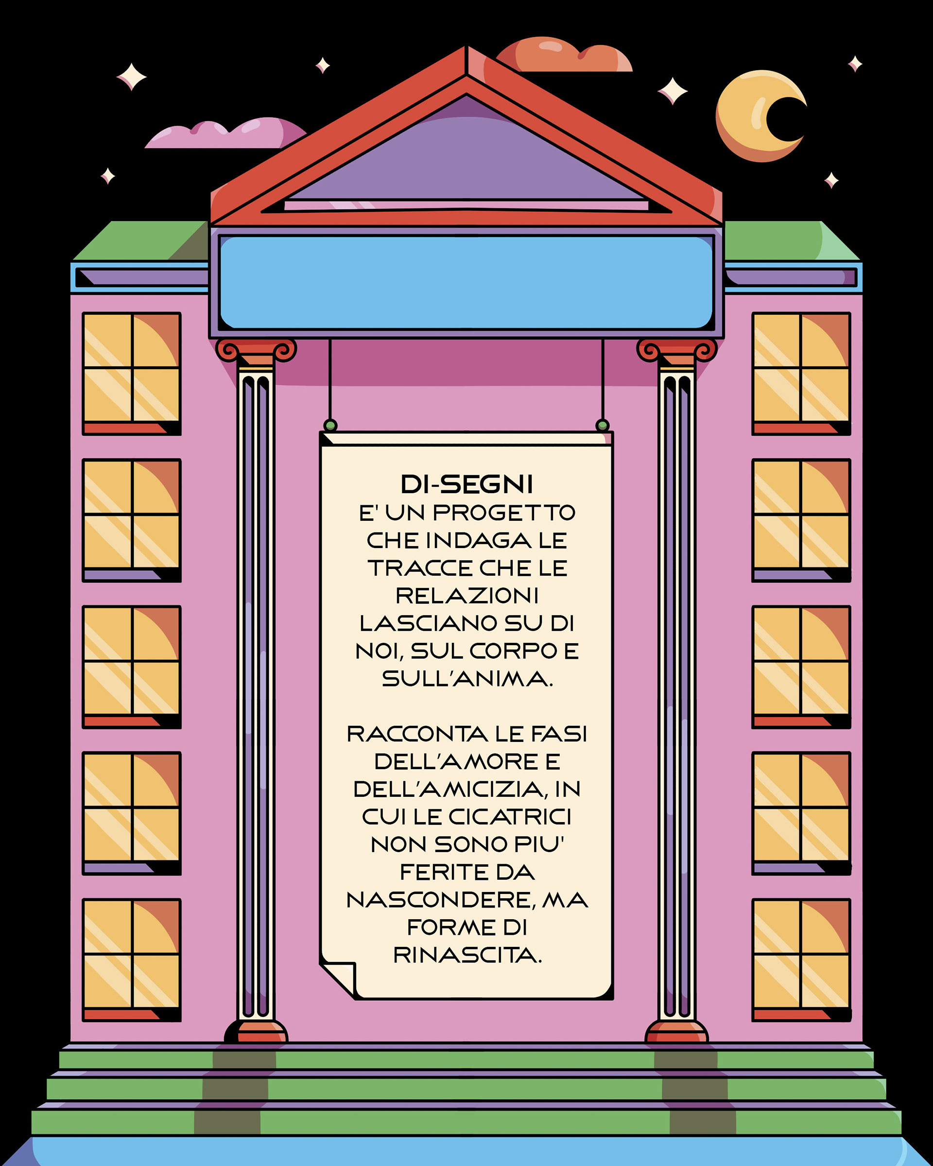 DI-SEGNI è un progetto visivo e narrativo che esplora i tracciati dell’amore, dell’amicizia e delle relazioni attraverso i segni che lasciano sul corpo e sull’anima. Attraverso una serie di illustrazioni e lettere, oggetti fragili e segnati, come noi, il progetto mette in dialogo il linguaggio e lo strumento del disegno con quello delle emozioni.