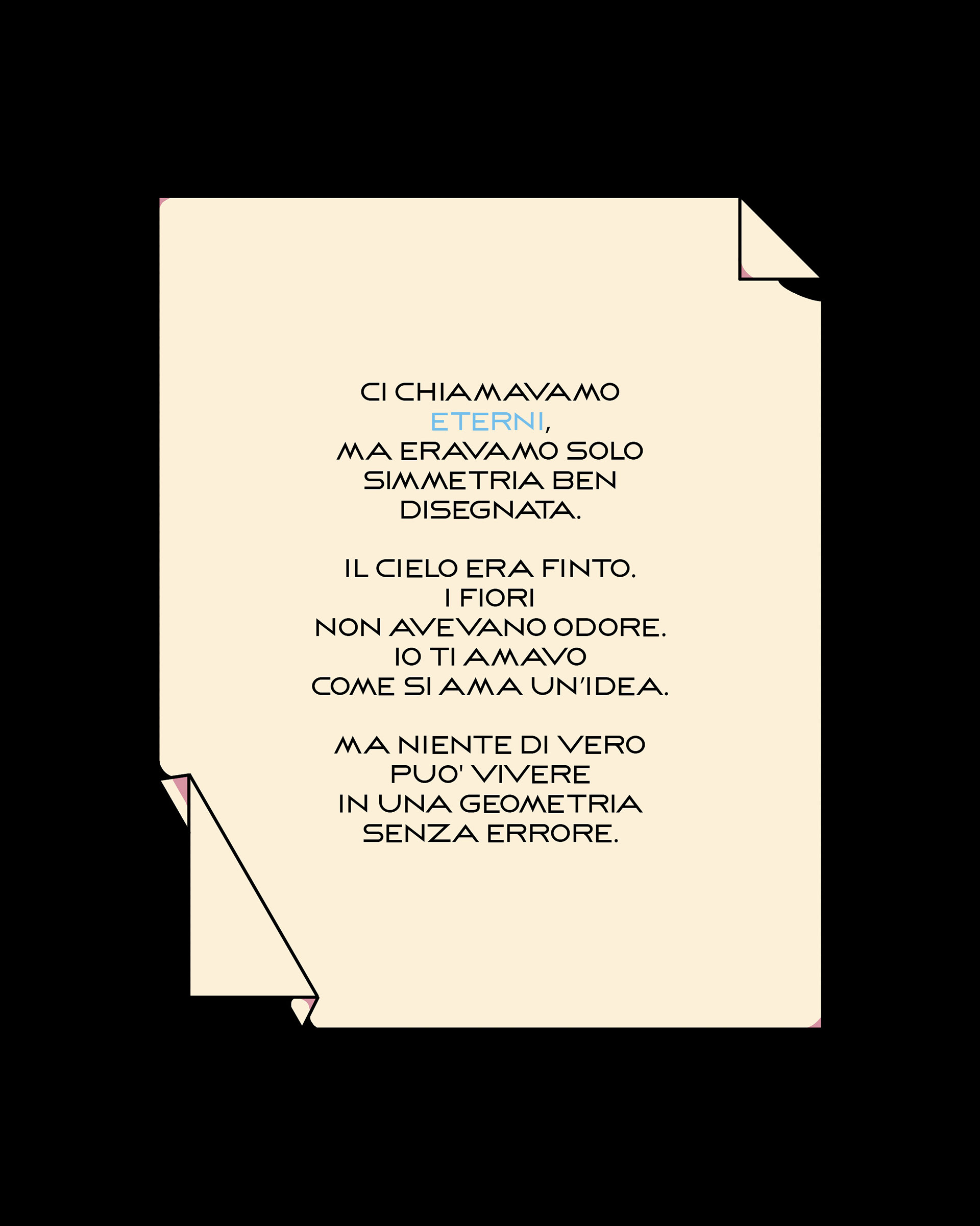È un’indagine sulle fasi dell’innamoramento e del legame umano, sulla forma che il dolore e la bellezza assumono quando non vengono nascosti, ma accolti e raccontati.