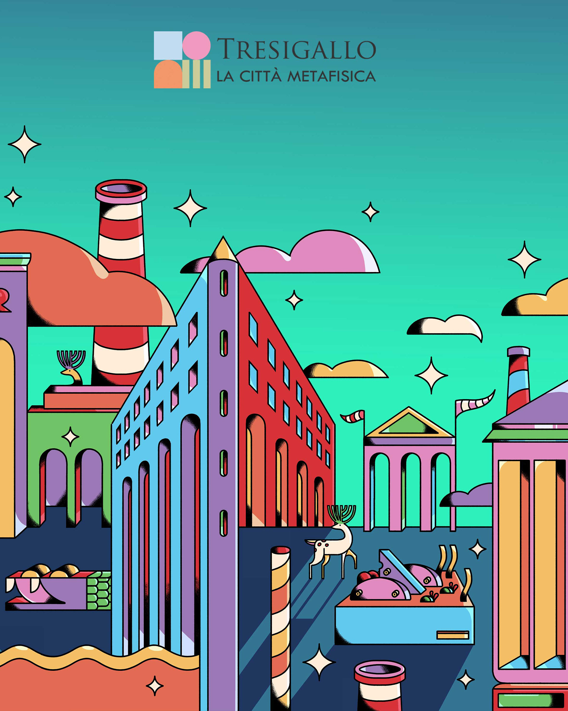 Illustrazione per “Le Giornate Metafisiche” a Tresigallo, una città che sembra uscita da un sogno razionalista.